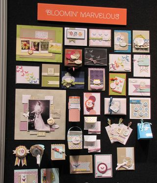 I wanted to share these pictures of display boards from Stampin' Up's Leadership Event. I didn't have a chance to go, so I love to see the display boards for ideas! These boards feature 4 of the Sale-a-Bration FREE stamp sets. I know they're blurry, but I got them from a friend, who got them from a friend; I don't know who the photographer was. I just like to see the samples and I hope you do too - have a great day!